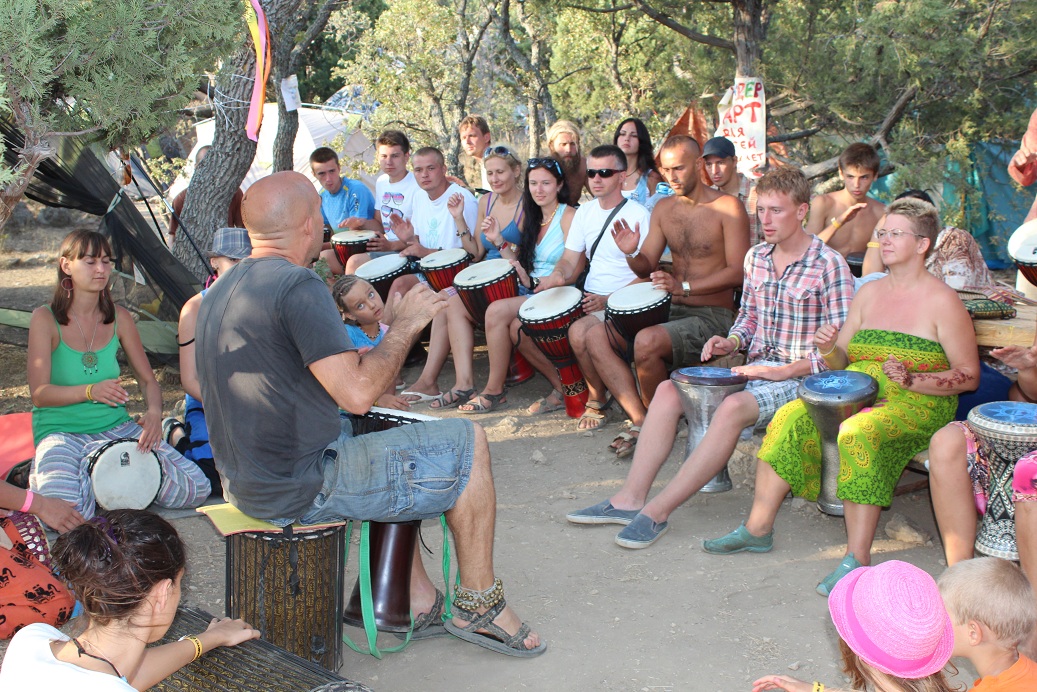 А как волшебно было передвигаться по улицам города и созерцать образы создаваемые неординарными личностями. Вот мидитирует йога, а напротив красна девица под музыку танцует восточный танец, а на другой полянке четыре руки делают лечебный релаксирующий массаж. Поворачиваем за угол, а там шаманы духа дождя призывают (и таки у них получилось), а  на соседней поляне магистр секса просвещает жаждущих  и голодных. И казался бы, что стоны должны доносится с этой поляны, ан нет, стоны слышны с противоположной стороны города, где практикуют тантрический секс и холотропное дыхание. Порой казалось, что даже земля оргазмирует в унисон с жителями этого города, города воистину сказочного и удивительного.